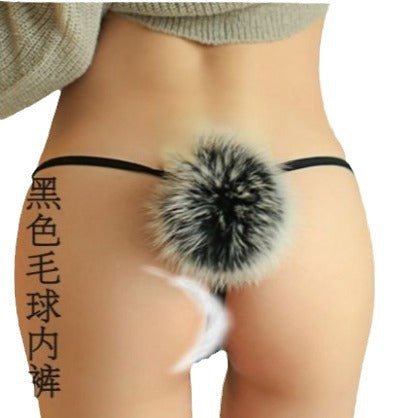 erotic panties wholesale feminine pseudo lady hairball panties open free rabbit tail temptation thong pants N39